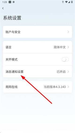 3、進入系統設置頁面后,點擊消息通知設置選項。