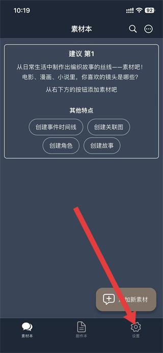 1、打開故事織機app,點擊頁面底部的設置選項。