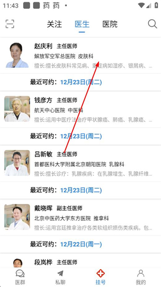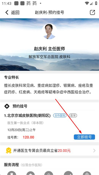 2、在醫生列表中選擇目標醫生,進入該醫生的預約掛號頁面。