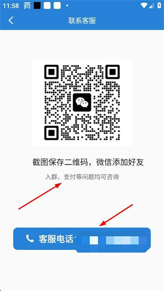 3、通過截圖二維碼微信添加好友,或撥打客服電話咨詢問題。