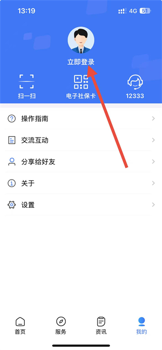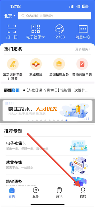 1、打開掌上12333,點擊底部導航欄最右側我的選項。