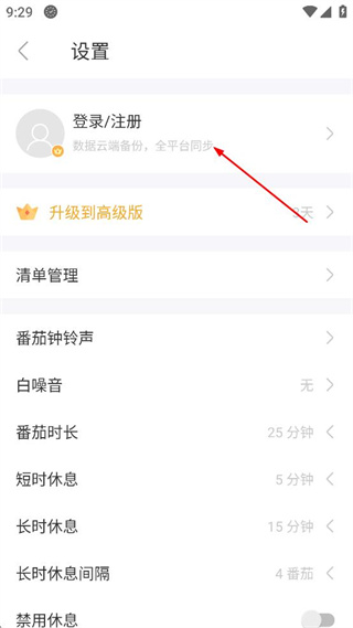 3、在設置頁面再次點擊“登錄/注冊”,進入登錄輸入界面。