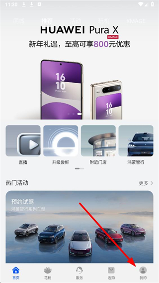 1、進入我的華為app后,在首頁界面點擊底部我的選項,進入我的個人頁面。