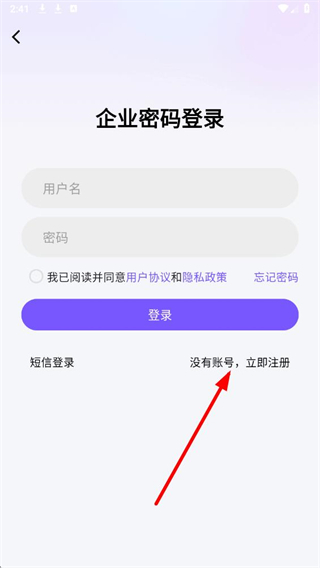 2、在企業密碼登錄頁面,找到下方的立即注冊選項并點擊,進入企業賬戶注冊流程。