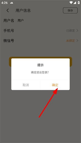 4、在彈出的提示框中,點擊確定,即可退出賬號。