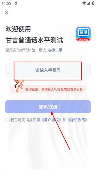 3、在登錄/注冊頁面,填寫手機號,點擊登錄/注冊。