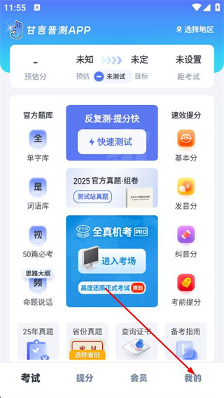 1、打開普通話水平測試,點擊底部導航欄我的選項。