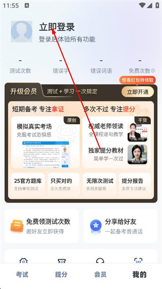 2、在我的頁面中,找到并點擊上方的立即登錄區域。