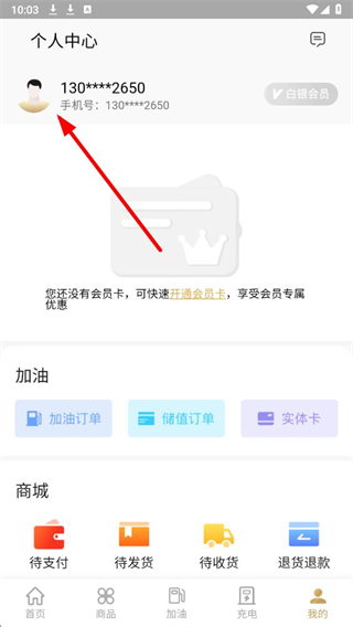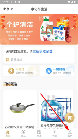 1、進入中化油生活應用,點擊首頁底部我的選項,進入個人中心頁面。