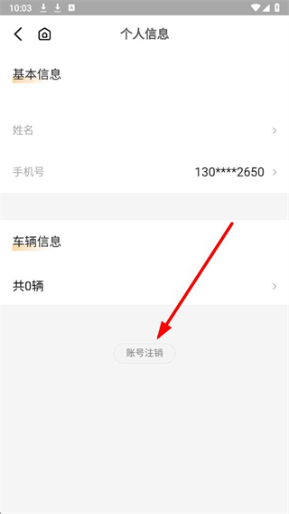 3、在個人信息頁面,找到賬號注銷選項并點擊,進入賬號與安全的驗證頁面。