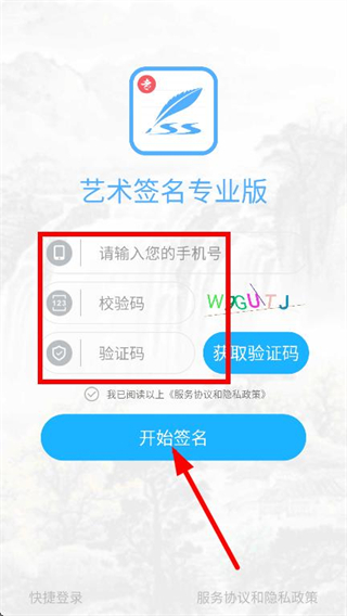 4、填寫手機號和驗證碼,點擊開始簽名,即可完成登錄。