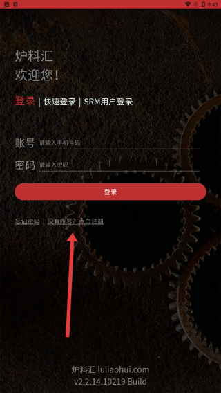2、進入爐料匯登錄界面,若尚無賬號,點擊點擊注冊選項,跳轉至注冊頁面開始賬號注冊流程。