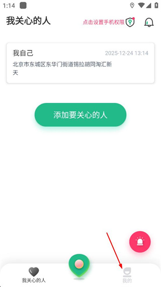 1、打開關心他人定位APP,在主界面找到底部導航欄的我的選項,點擊進入個人頁面。
