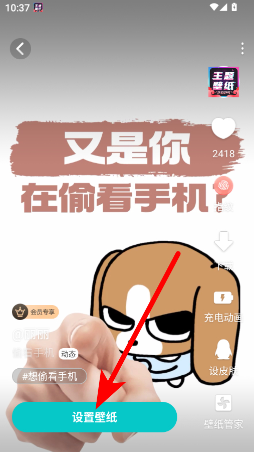 4、在壁紙詳情頁,點擊設置壁紙按鈕,即可完成壁紙設置操作。