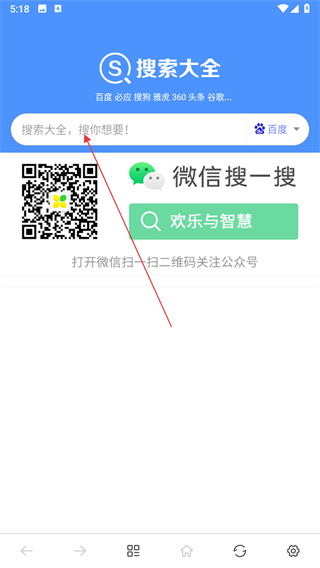 1、打開搜索大全應用,點擊進入搜索框頁面。