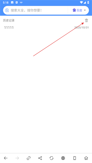 2、在歷史記錄頁面,點擊右上角的垃圾桶圖標。