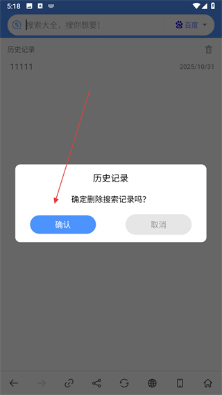 4、刪除后,歷史記錄區域會清空,即成功刪除歷史記錄。