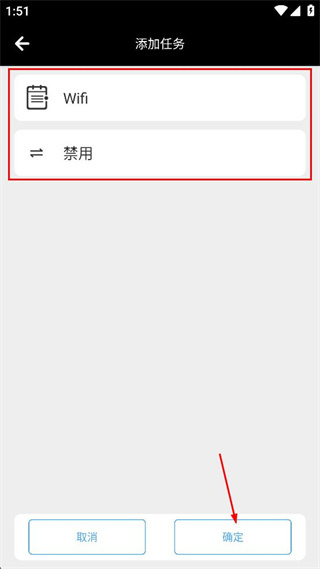 4、在添加任務頁面設置WiFi狀態為禁用,點擊確定,完成任務添加。