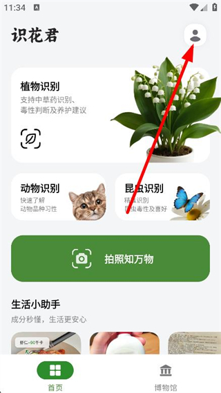 1、打開拍照識花君app,點擊右上角的個人中心圖標。