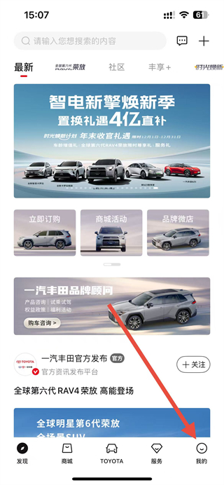 1、在一汽豐田應用首頁,找到底部我的選項并點擊,進入對應頁面。