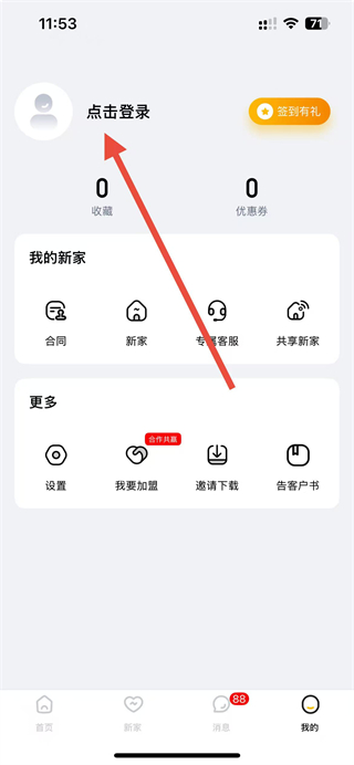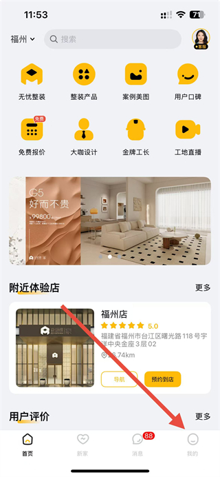 1、打開金螳螂家裝APP,點擊右下角我的進入個人頁面。