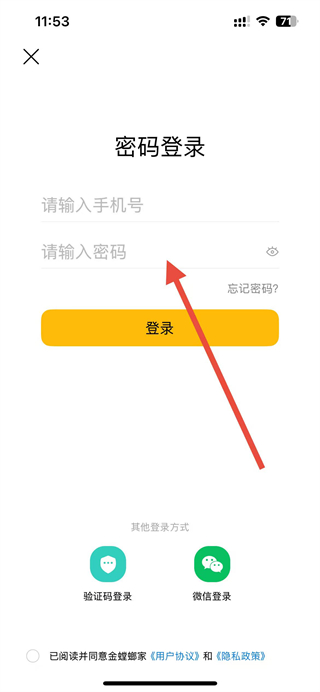 4、在頁面輸入手機號和密碼,勾選相關協議后,點擊登錄按鈕即可完成密碼登錄操作。
