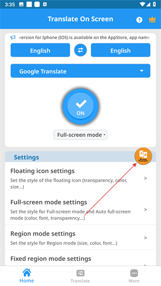translate on screen「屏幕翻譯」是一個可以隨時隨地翻譯屏幕上文本的應用,即使您在網上沖浪,玩游戲時,引用支持100多種語言。