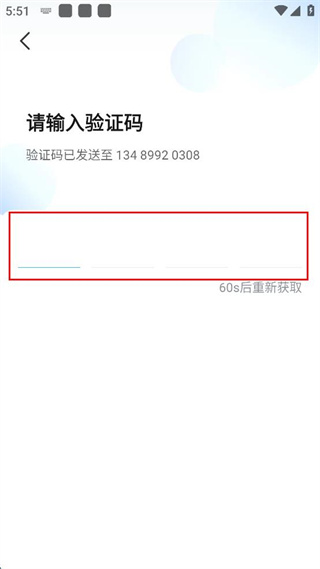 4、進入請輸入驗證碼界面,將發送到手機的驗證碼填入對應輸入框完成驗證。