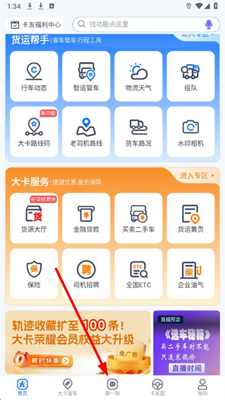 1、打開車旺大卡APP后,在界面底部,找到聊一聊選項并點擊,進入聊天界面。