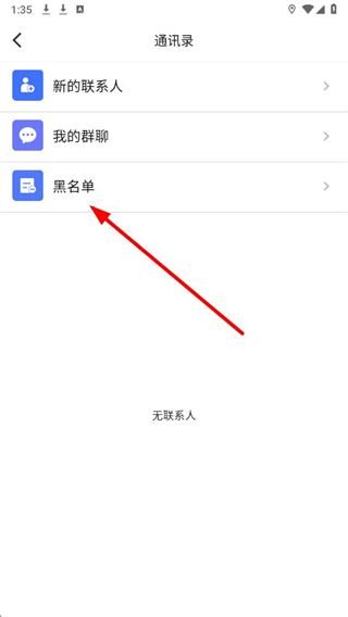 3、在通訊錄頁面中,找到黑名單選項并點擊,進入黑名單的管理界面。