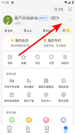 1、打開騰訊新聞APP,進入我的,在常用功能里點擊字體字號設置。