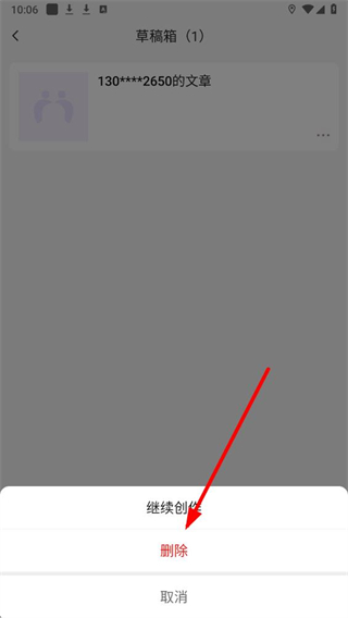 4、在彈出的操作菜單里,選擇刪除選項,即可完成對應草稿信息的刪除操作。