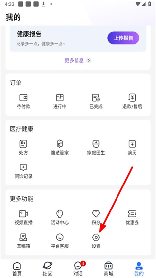 2、在我的個人頁面中,在更多功能區域里,點擊設置選項,進入設置頁面。