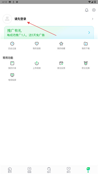 2、進入我的頁面內,點擊最上方請先登錄的區域。