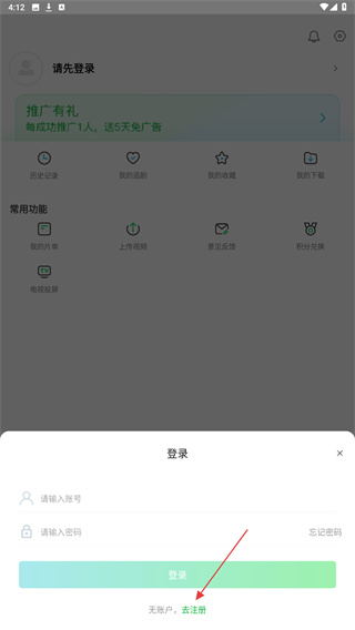 3、在下方彈出的登錄方式中,點擊注冊的功能按鈕。