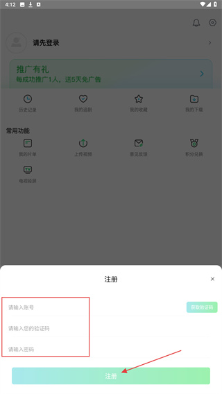 4、輸入賬號、驗證碼以及密碼后,再點擊注冊的按鈕即可。