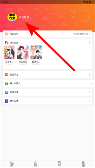 1、打開免費漫畫大全APP,點擊右下角我的,進入個人頁面。