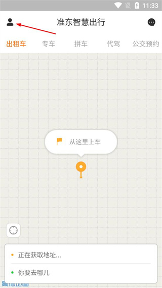 1、打開淮東智慧出行軟件,點擊頁面左上角的頭像圖標,進入賬號登錄相關界面。