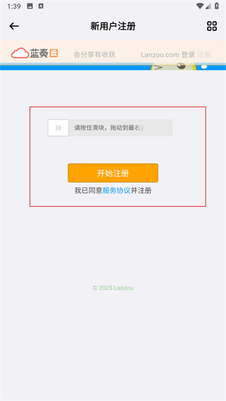 1、打開藍奏云登錄頁面,找到下方的注冊選項,點擊進入新用戶注冊頁面。