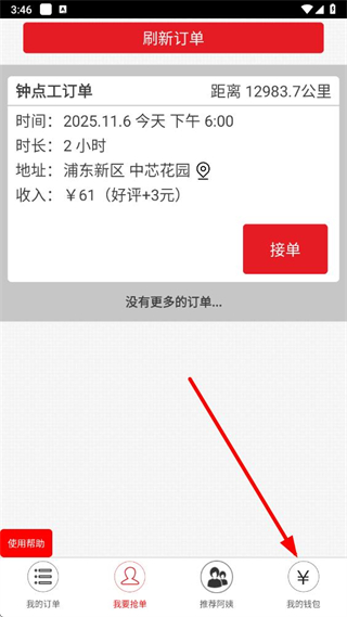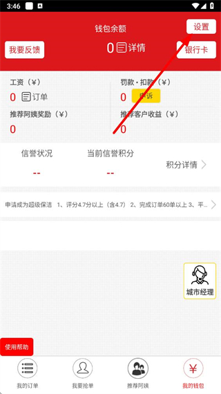 1、打開超級阿姨端app,點擊底部導航欄中我的錢包圖標,進入個人頁面。