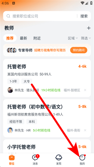 1、在職位的頁面,需要點擊底部我的按鈕,進入個人的頁面。