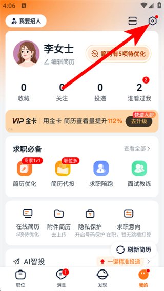 2、在個人頁面中,點擊右上角的設置圖標,進入設置頁面。