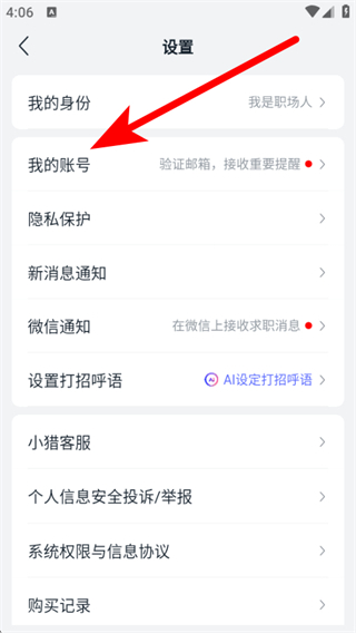 3、在設置的頁面,我們需要點擊我的賬號的這個選項。