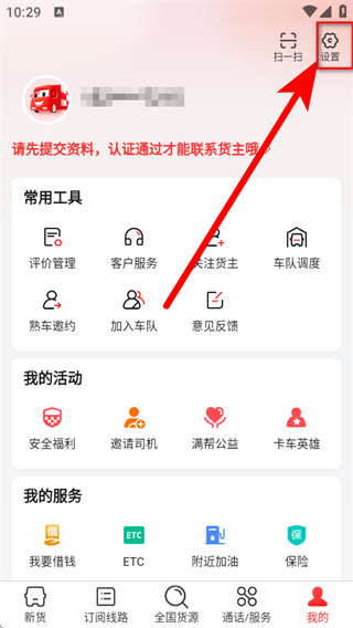 1、打開運滿滿司機APP后,需要點擊底部我的,進入個人頁面。