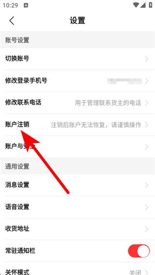 3、在設置頁選擇賬戶注銷,進入賬戶注銷的確認頁面。