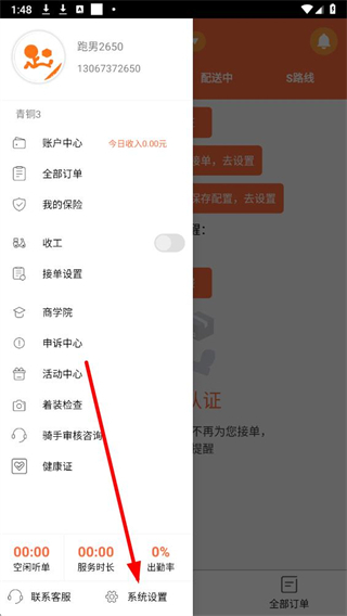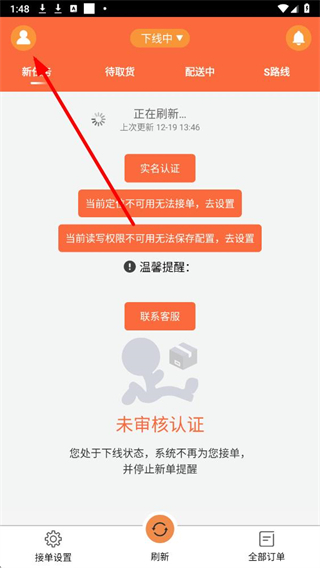 1、打開愛跑腿騎士版app,在主頁面找到左上角的個人圖標并點擊,展開側邊功能菜單。