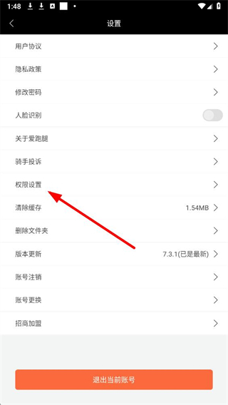 3、在設置頁面里,選擇權限設置選項并點擊,進入權限相關的配置界面。