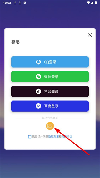 2、勾選已閱讀并同意相關協議,選擇郵箱登錄方式,進入郵箱登錄頁面。