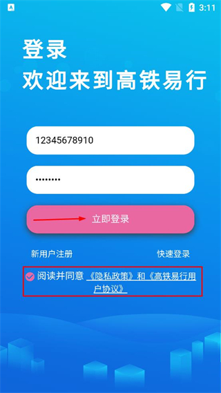 4、確認已勾選閱讀并同意相關協議的選項,點擊立即登錄按鈕完成登錄操作。