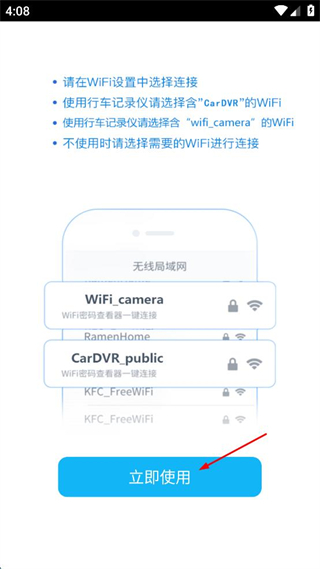 1、查看頁面提示的WiFi連接說明,確認對應設備需連接的WiFi名稱,點擊立即使用按鈕。